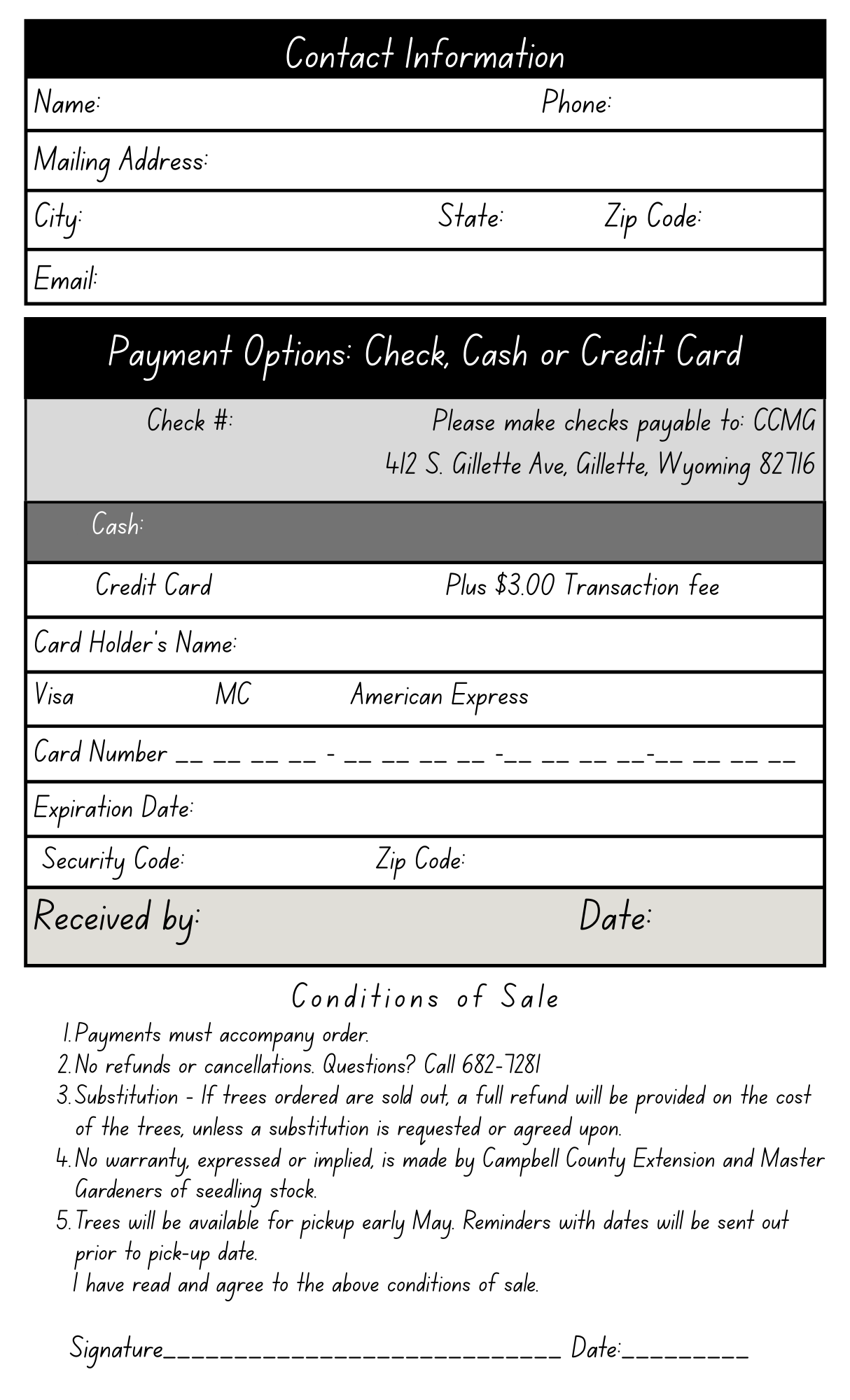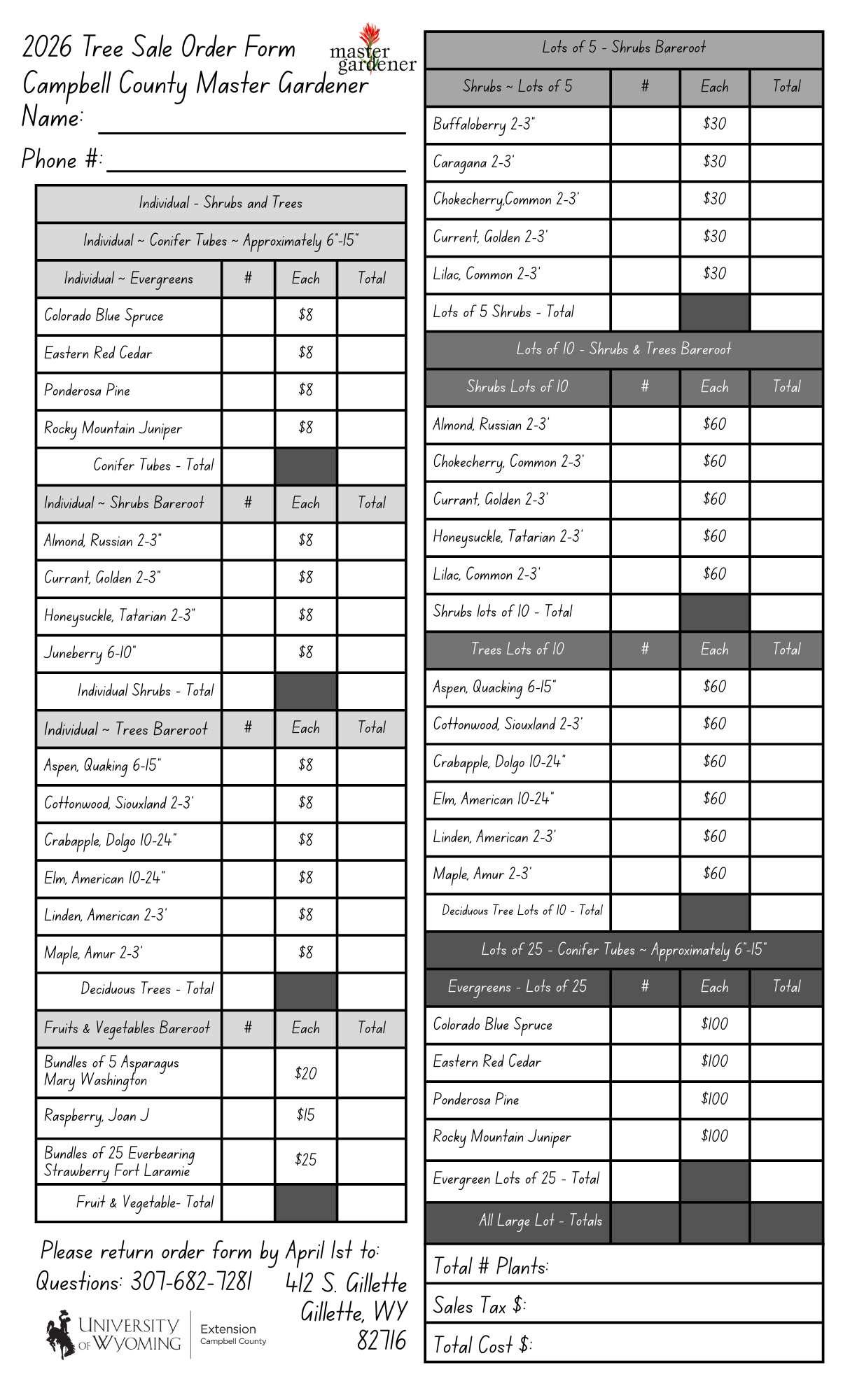 Click for printable pdf ~ 2026 Tree Sale Form