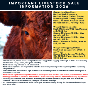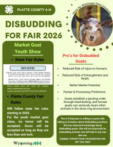 Platte County Fairboard Changes: Youth Market Goat Show: No horns will be allowed for the 2026 fair, scurs under 1 inch will be accepted.
