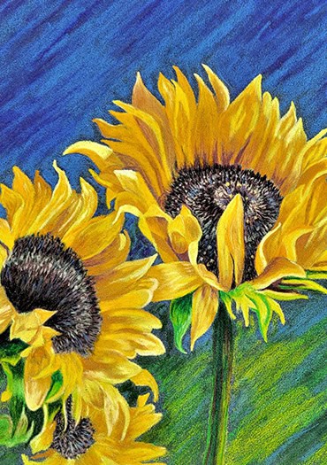 Lynn works in professional colored pencil, watercolor, and pastel. Colored pencil is her primary medium—ideal for balancing creative momentum with life’s demands. Her florals are vivid, detailed, and often larger-than-life, while her wildlife pieces capture the quiet presence of the natural world. Though it can be difficult to source professional materials locally, she makes every effort to do so.