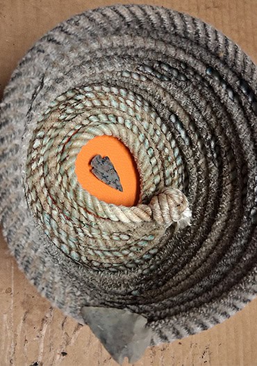 Sandra’s work centers on coiled lariat rope baskets—each one unique in its texture, color, and history. Her process is hands-on and resourceful, emphasizing craftsmanship and sustainability through upcycled materials.