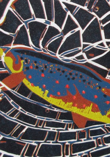 Sarah primarily creates linoleum block prints and occasionally works with wood. Her process favors bold shapes over fine detail, capturing the energy and essence of her subjects. Her art often reflects themes of outdoor adventure, natural patterns, and the quiet moments found in motion.