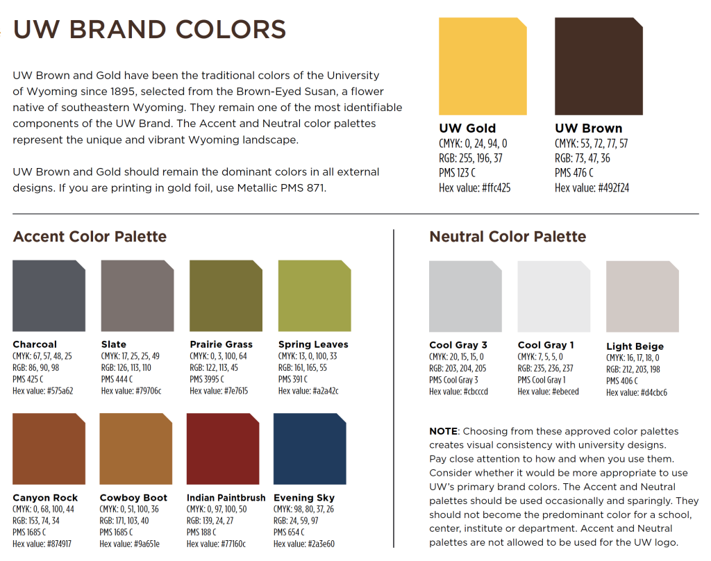 Below is the UW Brand Standards combined with UW Extension WyoLearn Canvas Online Courses.