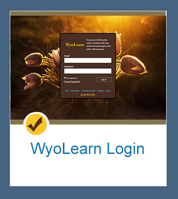UWE WyoLearn guide is an introduction to our basic design process, standards, and tools used to develop WyoLearn online canvas courses. We are grateful to have you join us and look forward to collaborating with you. As the teacher, and content expert you will be working with the UWE Instructional Technology Education Specialist, and the UWE Communications & Technology C&T Team. To learn more, please review the Guide, Design Process, Tools & Resources, and eLearning Examples using the links above. If you already have an account please use the Login page.